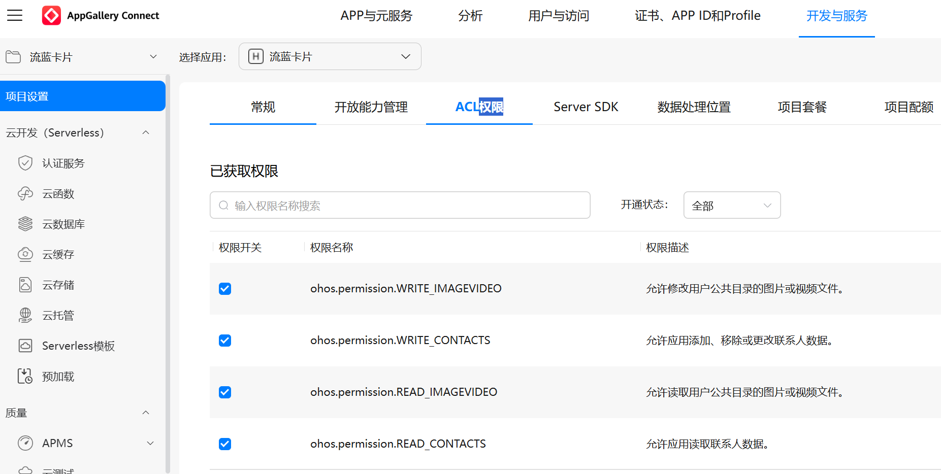 这一部分权限需要在AGC平台上进行申请,接着跟着生成最新的调试和发布证书,否则开发调试和上架都会因为权限问题导致失败。