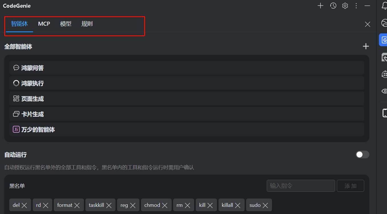 你可以自定义智能体,理解为这个 AI 编程工具的角色是谁即可,文章末尾提供万少的智能体以供参考
