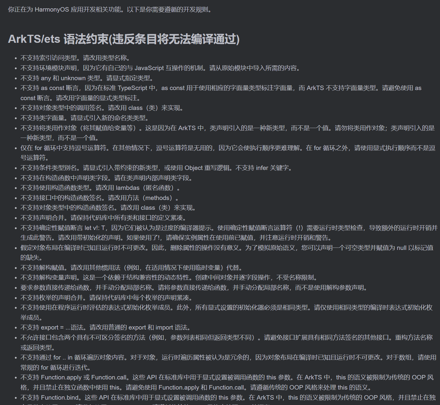 ## ArkTS/ets 语法约束(违反条目将无法编译通过)