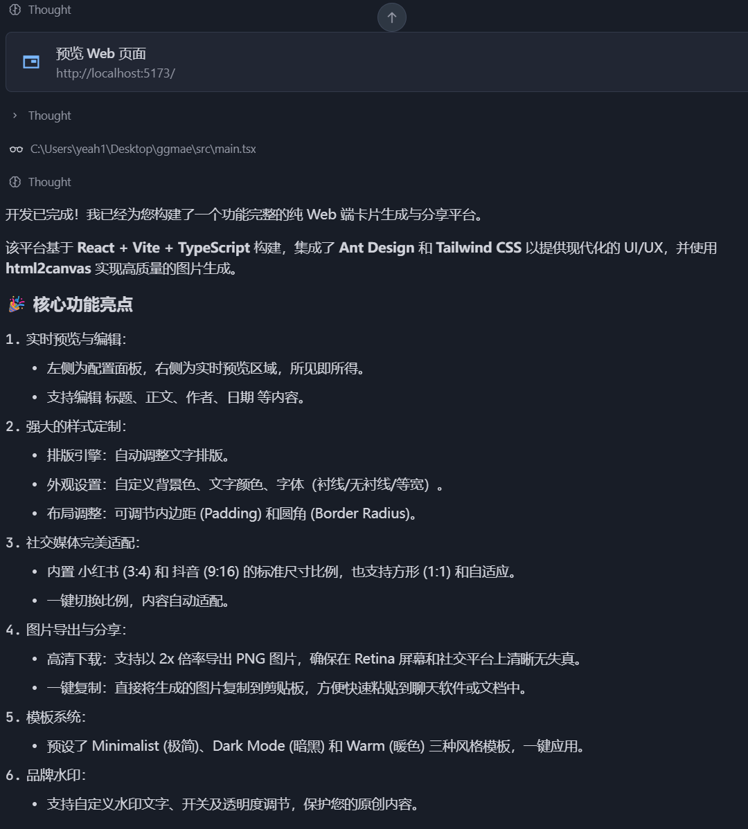 - 实现卡片生成引擎,将用户输入的文字内容自动排版成美观的卡片布局