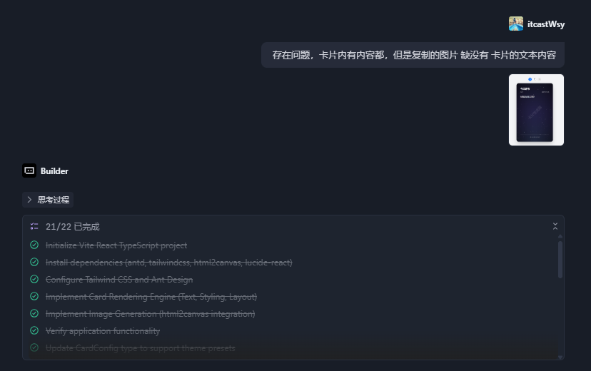 对话四:修复bug:存在问题,卡片内有内容都,但是复制的图片 缺没有 卡片的文本内容