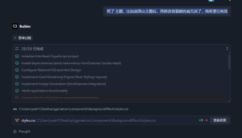 接着考虑到卡片需要酷炫的皮肤,我就开始让Trae帮我在已有的功能下添加功能。